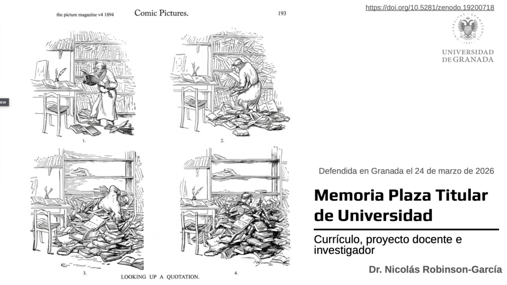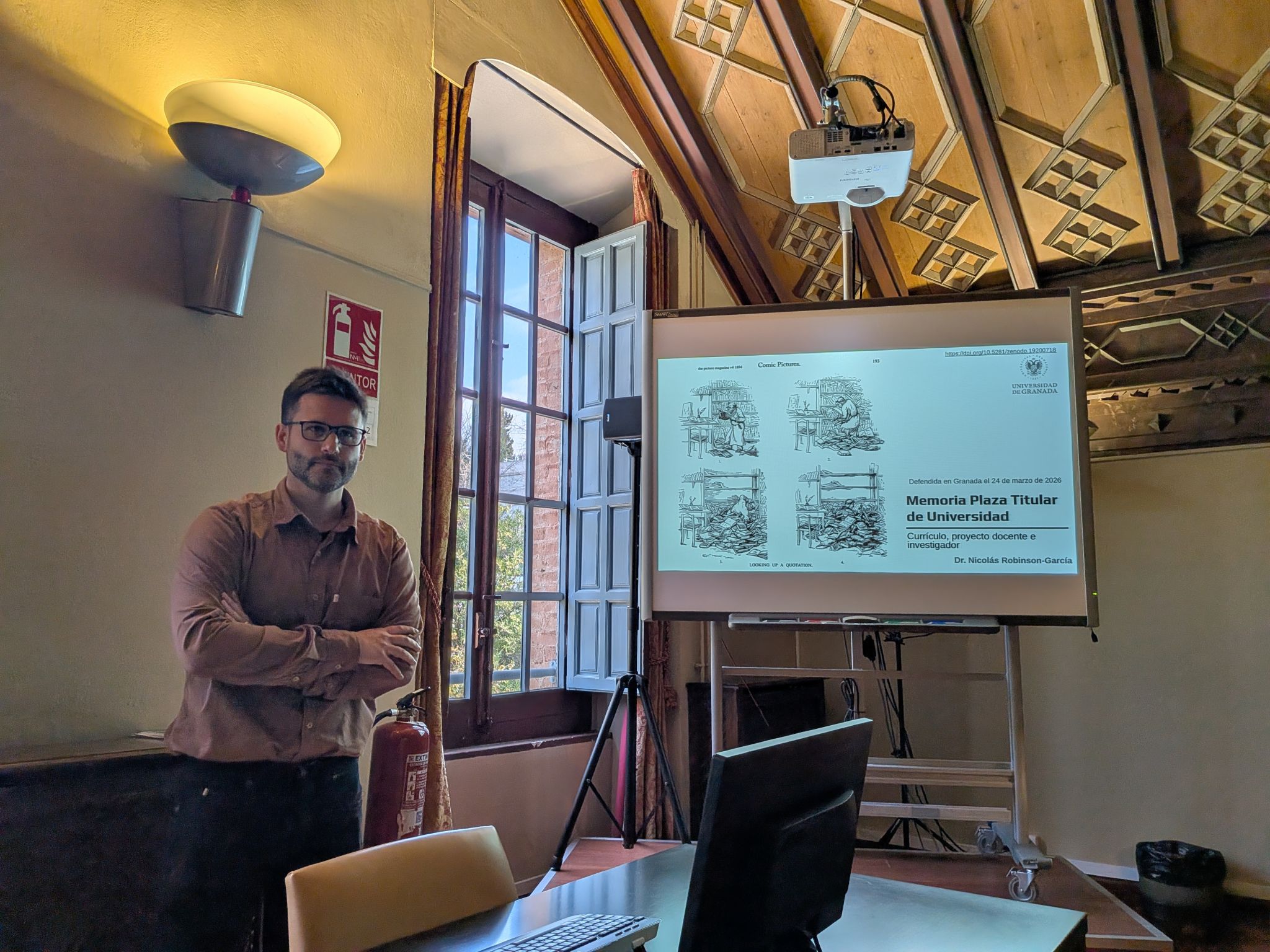 Three days ago, our colleague NicolĂ¡s Robinson-GarcĂ­a successfully defended his position as an Associate Professor in the Department of Information and Communication at the University of Granada.